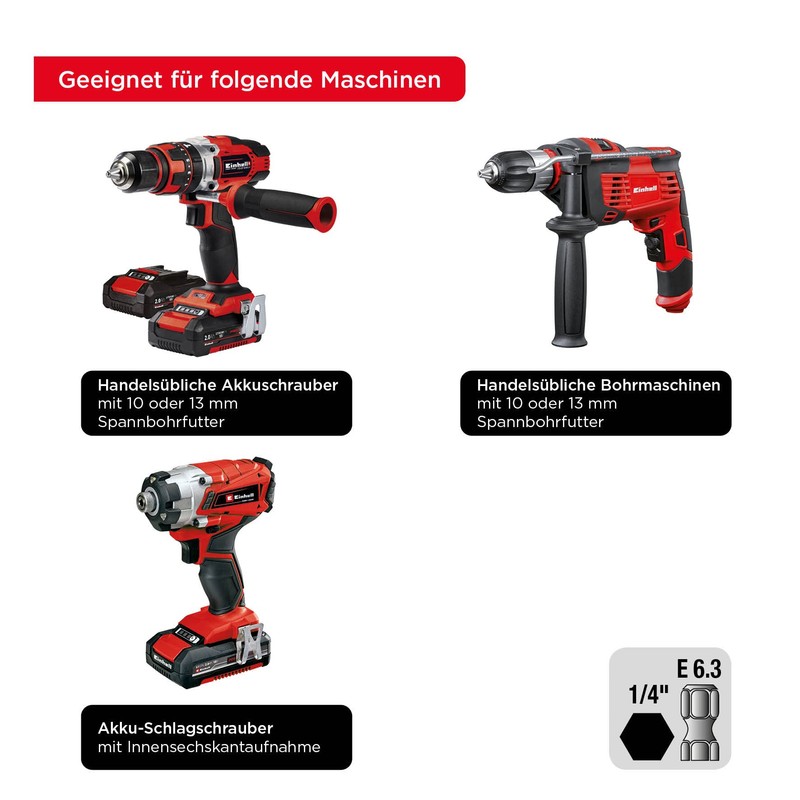 - Hardwood and softwood drill bits with the following dimensions: Working length 95 mm, total length 165 mm, diameter 18 mm - Mount: Hexagonal shaft, in accordance with ISO 1173.