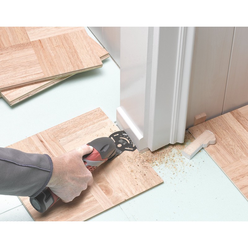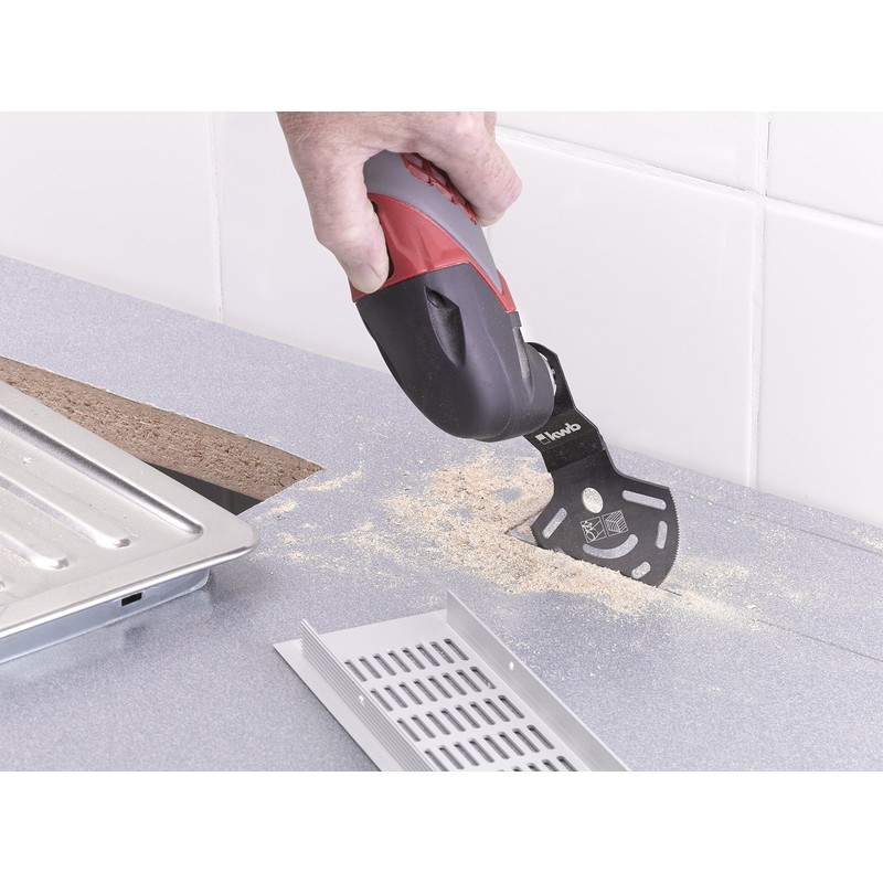 - Multifunctional tool ideal for cutting materials such as wood, parquet, laminate, plastic and fibreglass