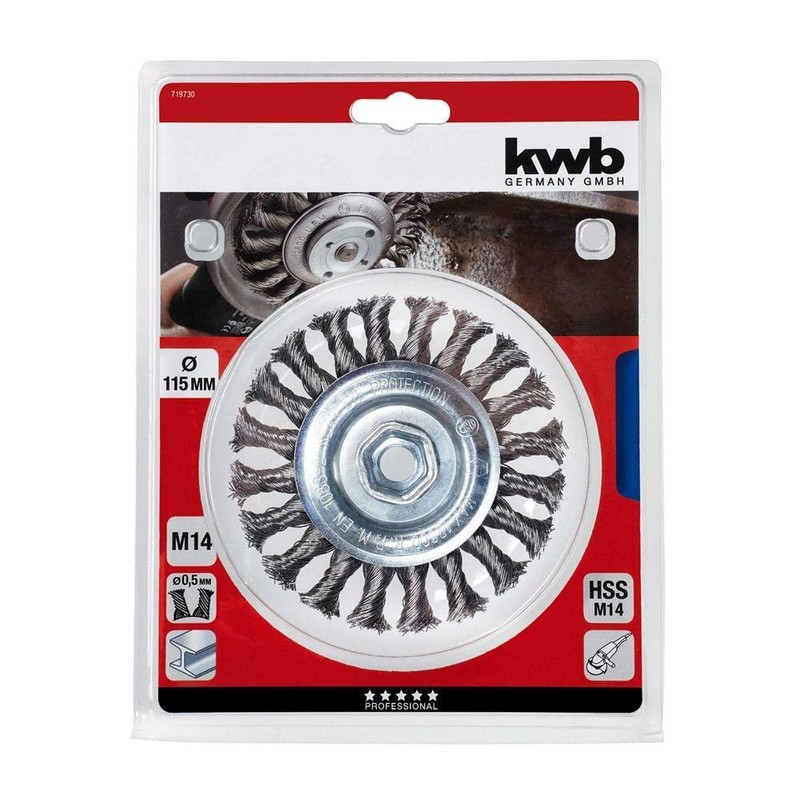 kwb Disc Brush for Angle Grinder, Diameter 115 mm, Knitted, M14 Thread Holder, Made of Braided HSS Steel Wire, for Metal and Stone, for Cleaning, Descaling, Roughing and Rust Removal