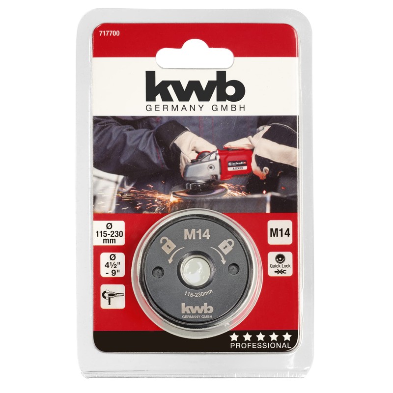kwb Quick Release Nut for Angle Grinder M14, Quick Release for Cutting Discs from 115-230 mm, Tool-Free Change without Key