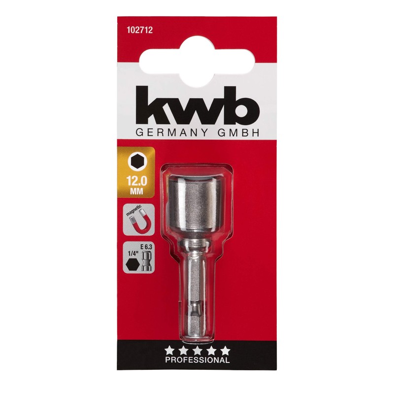 KWB Socket Spanner 12 mm Inner Hexagonal 102712 (1/4 inch E6.3 Hex Shank Iso 1173, High Weriger); 0 W; 0 TQ60 Steel V