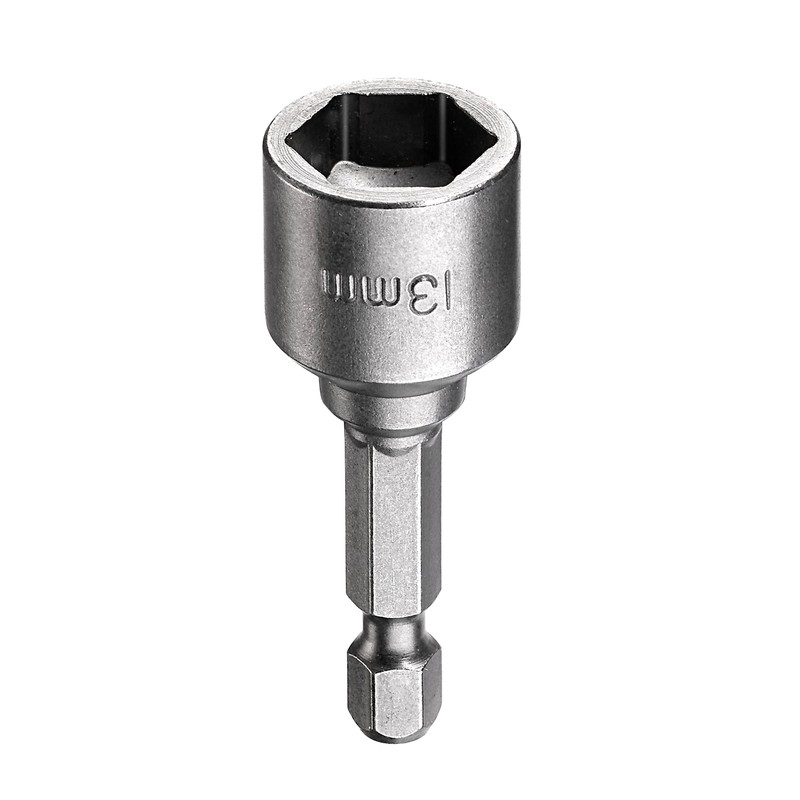 - Practical – The long nut has a 1/4 inch E 6.3 shaft for the external hex drive. With the spanner width of 13 mm, the socket can be used ideally for hexagonal screws.