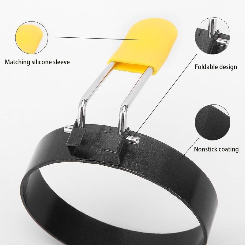 - COMFORTABLE HANDLE: Our Egg Shaper For Frying Pan Is Designed With A User-friendly Handle For Easy Lifting And Pulling, Foldable Handle For Easy Storage, Solid And Well-made, Egg Rings For Egg Mcmuffins Anti-scalded And Easy To Grip, Ensuring A Cool Touch Even In High Temperatures