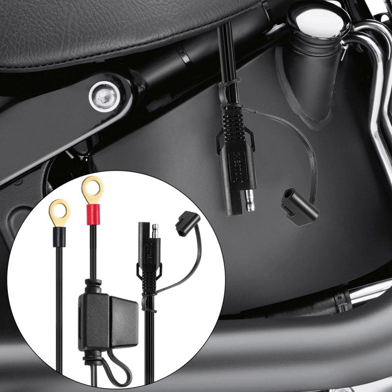 Attach ring terminals to the battery posts and leave permanently mounted to your battery. The SAE quick disconnect allows you to unplug your charger when you are ready to use your vehicle and simply plug back in when you return; keeping your battery at optimum charge!