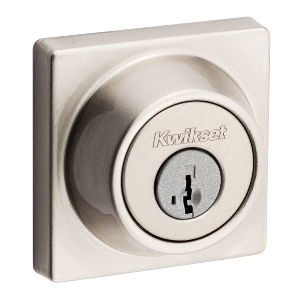Kwikset 660 Contemporary Deadbolt Deadbolt Lock, Satin Nickel Square Exterior Keyed Front Entry Door, Pick Resistant SmartKey Rekey Security, Single Cylinder Dead Bolt, with Microban Protection