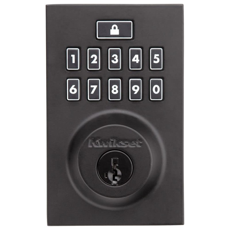 Kwikset 914 Contemporary Keypad SmartCode Electronic Deadbolt Smart Lock featuring SmartKey Security and ZigBee 3.0 Technology in Matte Black