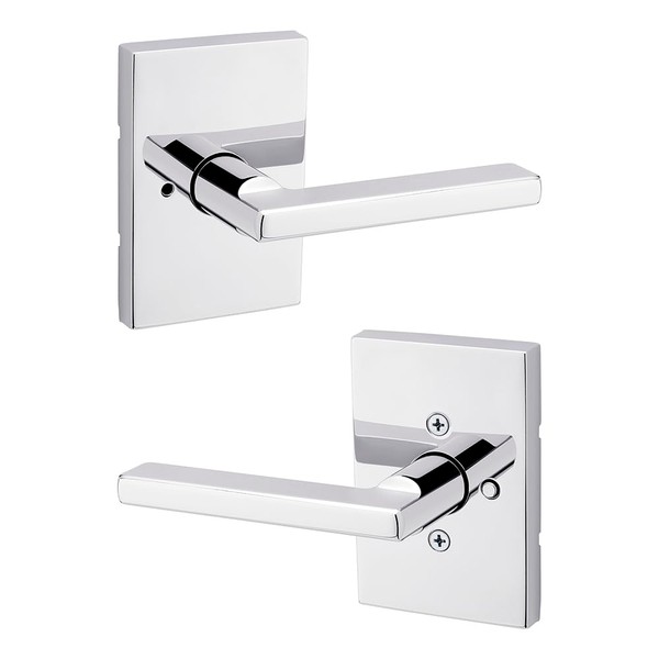 Kwikset Halifax Interior Privacy Door Handle with Lock, Door Lever for Bathroom and Bedroom, Polished Chrome Reversible Keyless Push Button Lock Door Lever