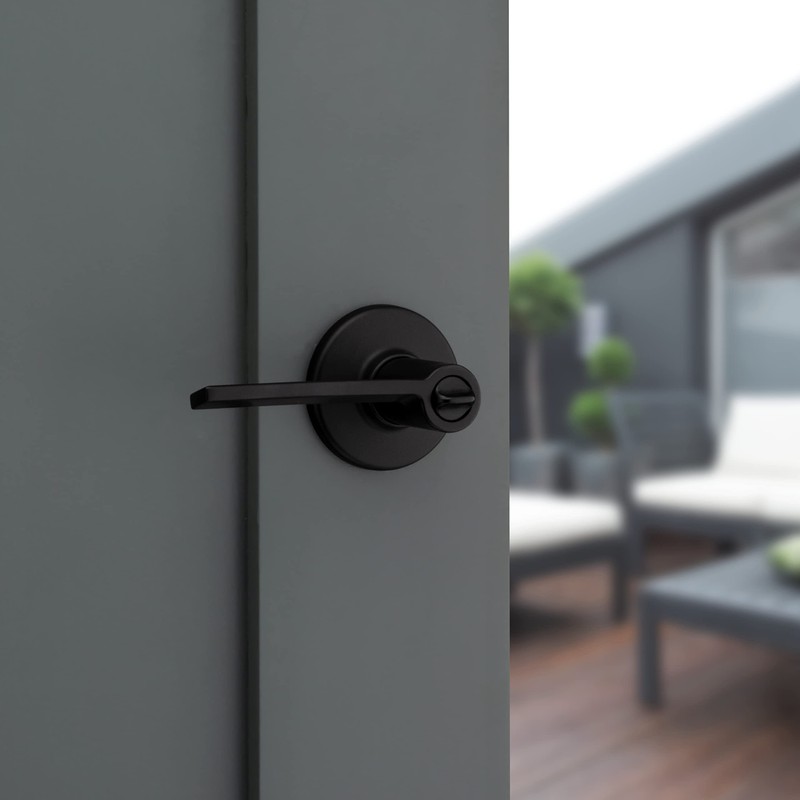Kwikset Ladera Entry Door Handle with Lock and Key, Secure Keyed Reversible Lever Exterior, Doorlock, For Front Entrance and Bedrooms, Matte Black, Pick Resistant Smartkey Rekey Security