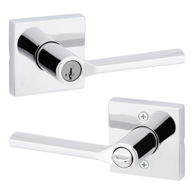 Kwikset Lisbon Entry Door Handle with Lock and Key, Secure Keyed Reversible Lever Exterior, Doorlock, For Front Entrance and Bedrooms, Polished Chrome, Pick Resistant Smartkey Rekey Security