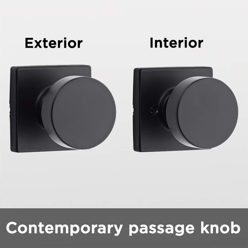 Kwikset Pismo Interior Passage Door Knob, Handle For Closet and Hallway Doors, Non-Locking Doorknob in Matte Black, with Microban Protection