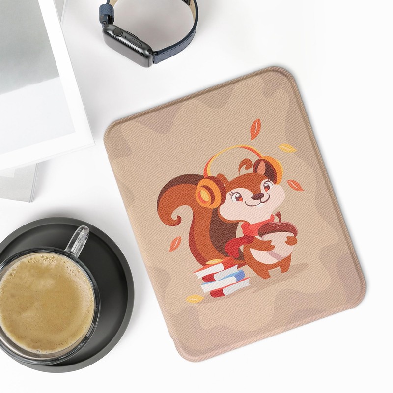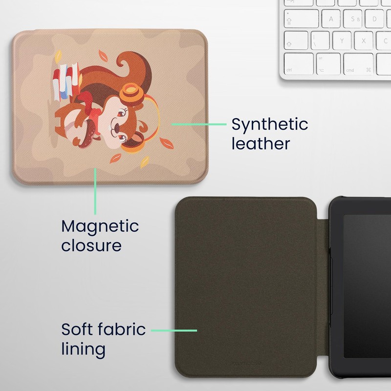 kwmobile Case Compatible with Barnes & Noble Nook Glowlight 4 / 4e Case - eReader Cover - Cute Squirrel Brown/Red/Beige