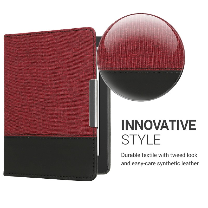 kwmobile Case Compatible with Kobo Aura Edition 2 - PU Leather and Canvas e-Reader Cover - Dark Red/Black