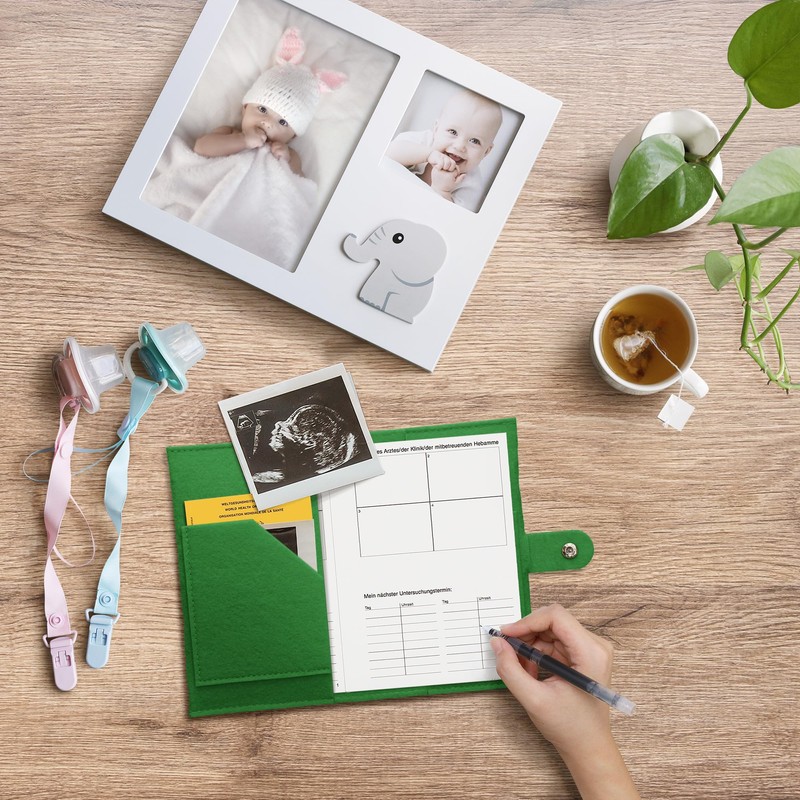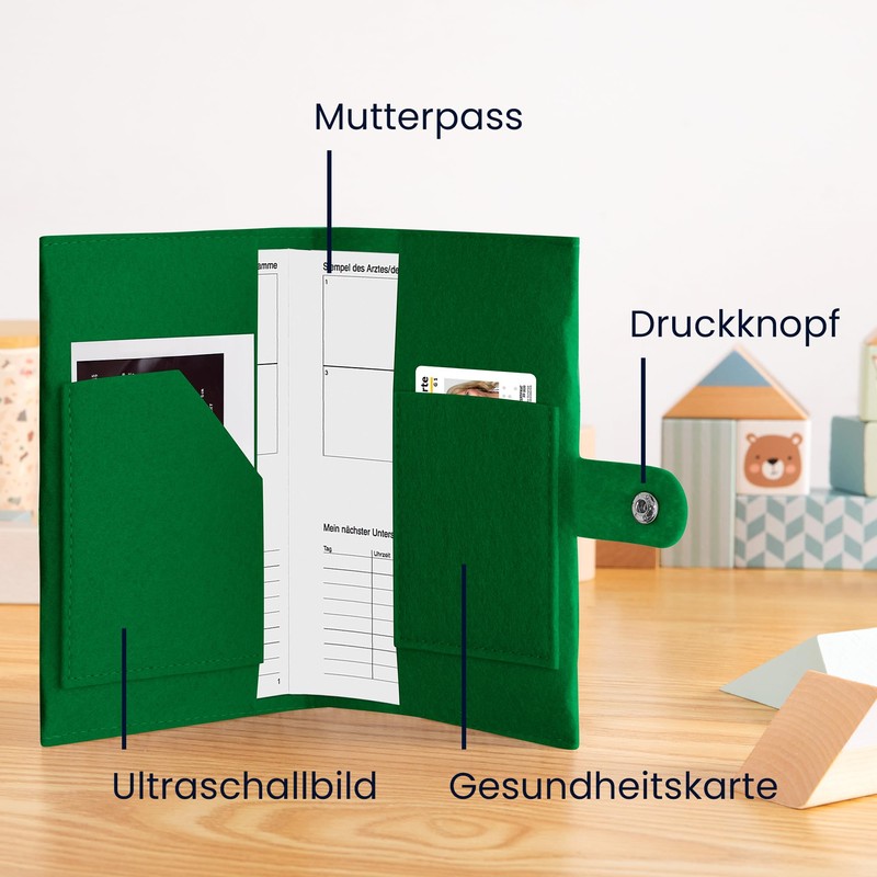 • We keep moments: with this felt cover for your maternity log you have all the important documents for your visits to the doctor or midwife in place. Also a great memory for after birth.