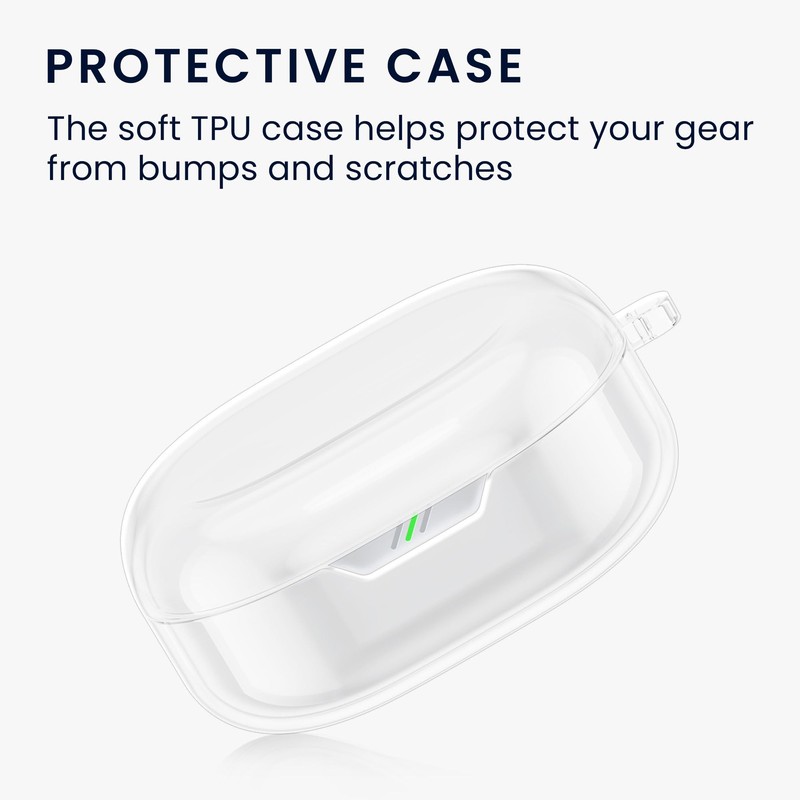 - TWO PART CASE: Earbuds pouch for protection and storage; made of flexible, clear TPU to protect from bumps and shocks