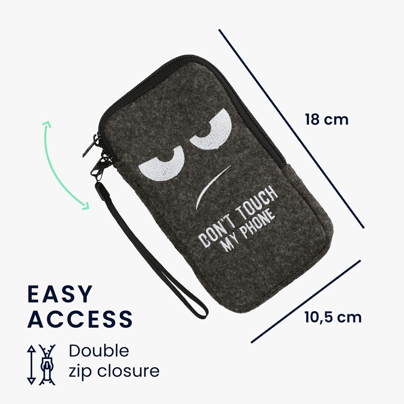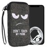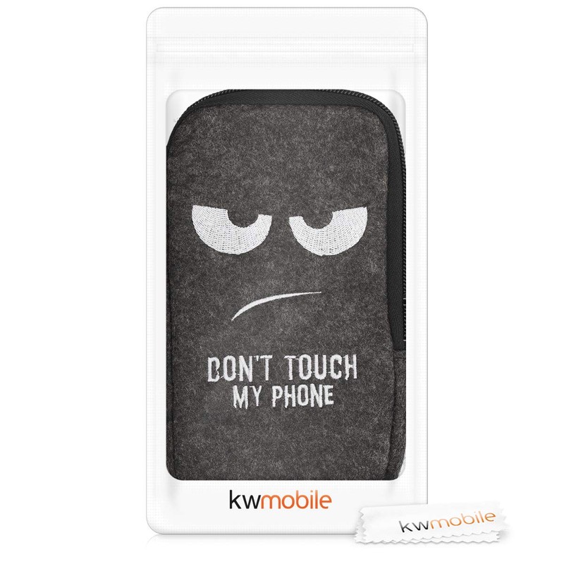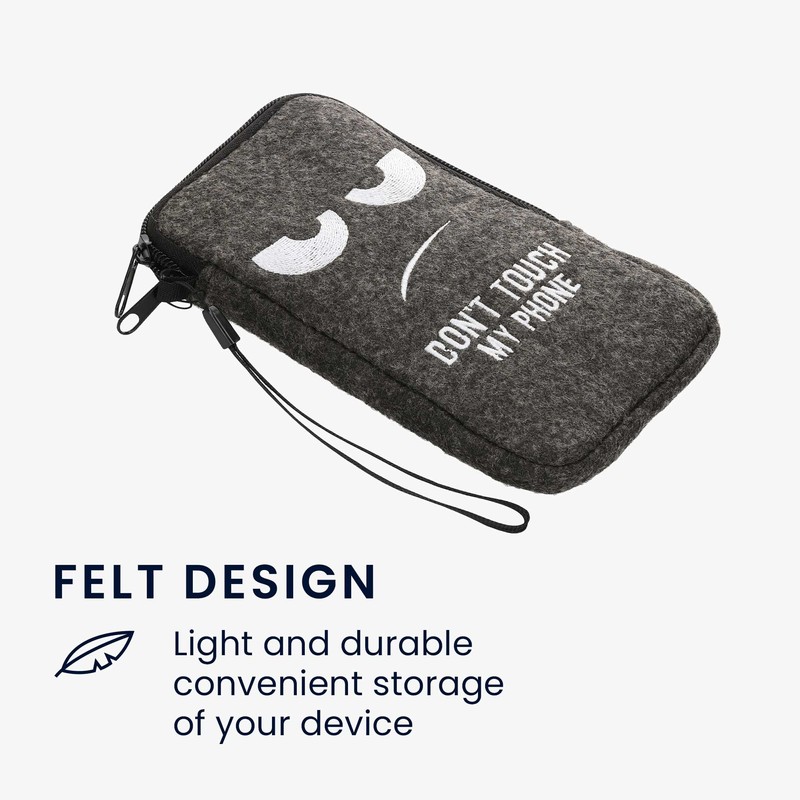 kwmobile Felt Phone Pouch Size L - 6.5" - Zippered Universal Bag with Zipper and Embroidered Design - Don't Touch My Phone White/Dark Grey