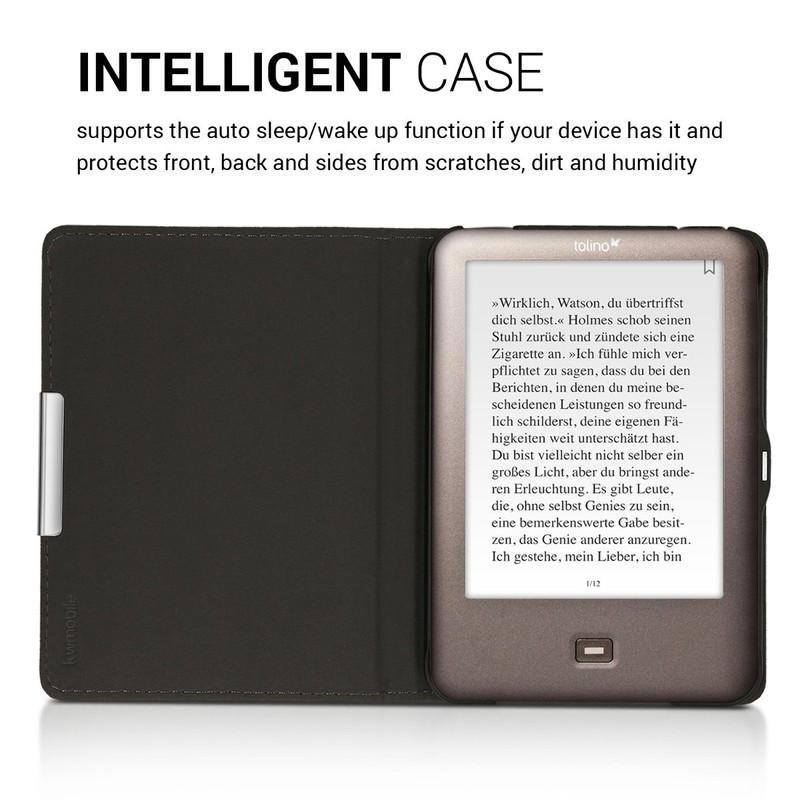 - Protective case with elegant leather look: the flip case is made of robust synthetic leather on the outside and protects your eBook reader from scratches, dirt and wear.