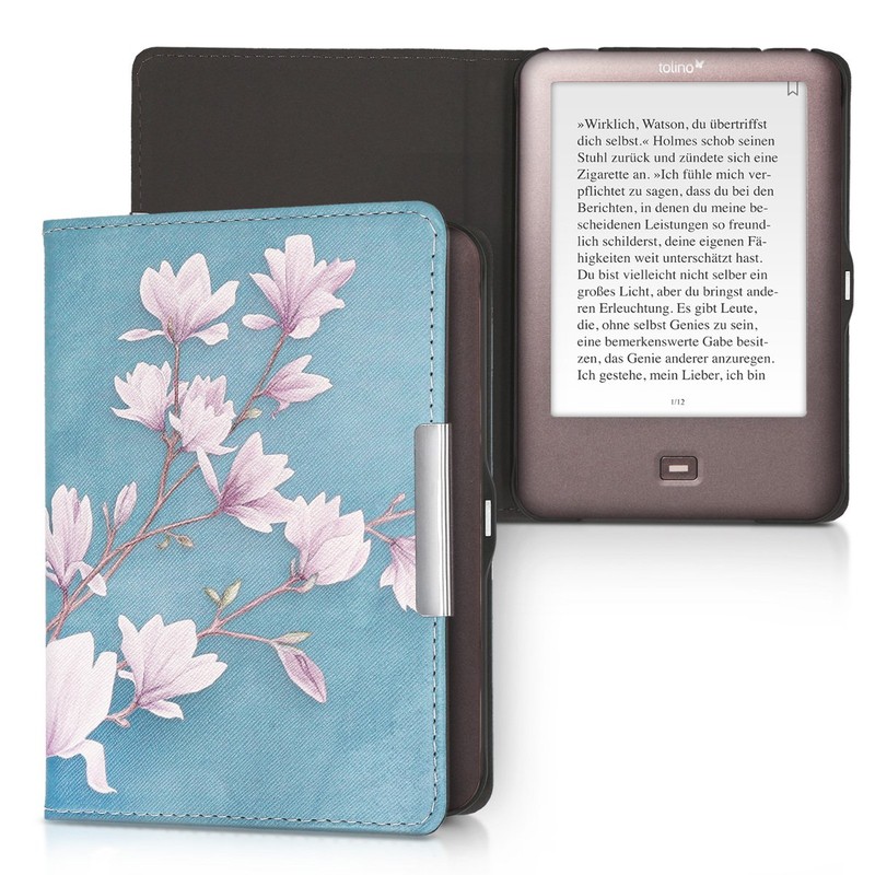 kwmobile Flip Case Compatible with Tolino Shine (2013) Case - eReader Case - Magnolia Taupe White Blue Grey