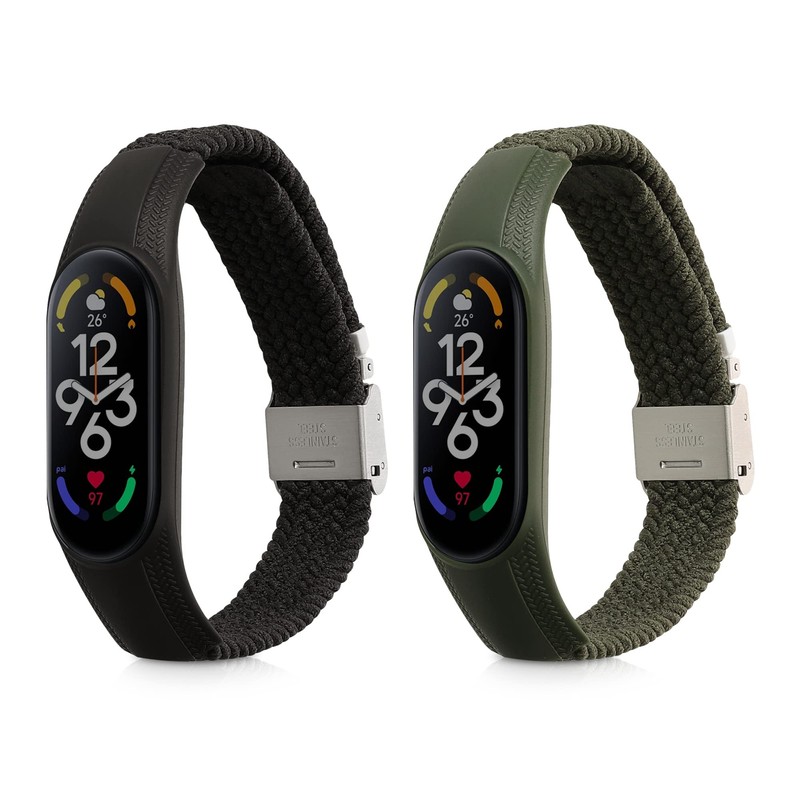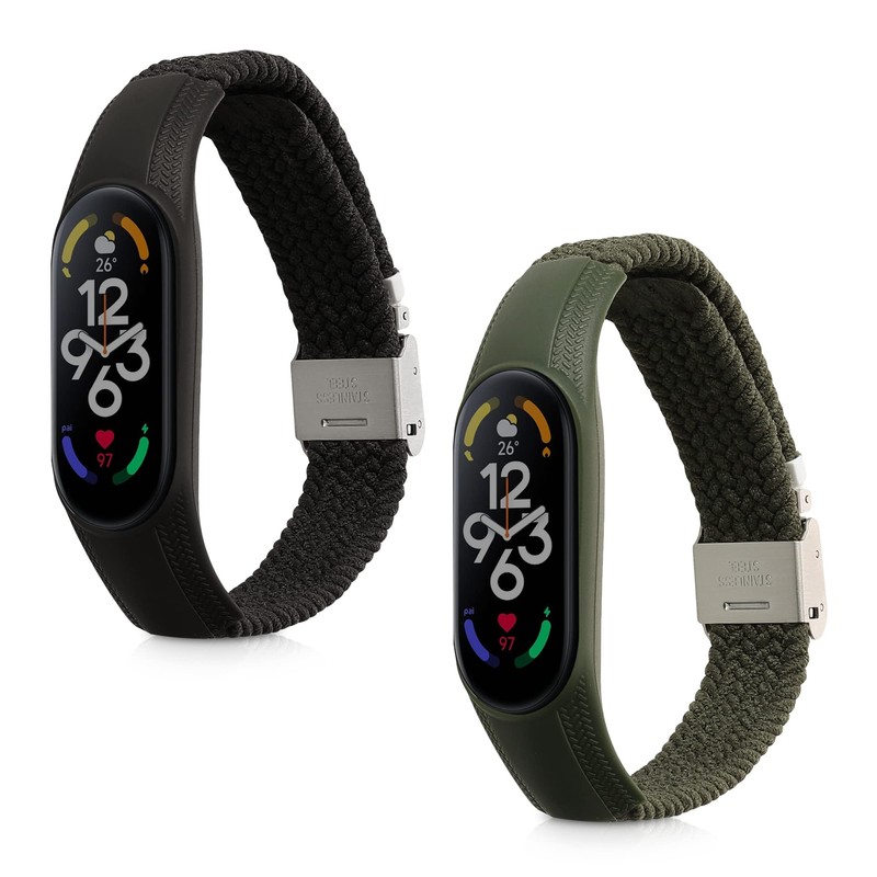 kwmobile Nylon Watch Strap Compatible with Xiaomi Mi Band 7 Strap - 2x Fitness Tracker Replacement Wristband with Clasp