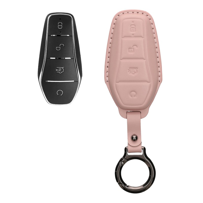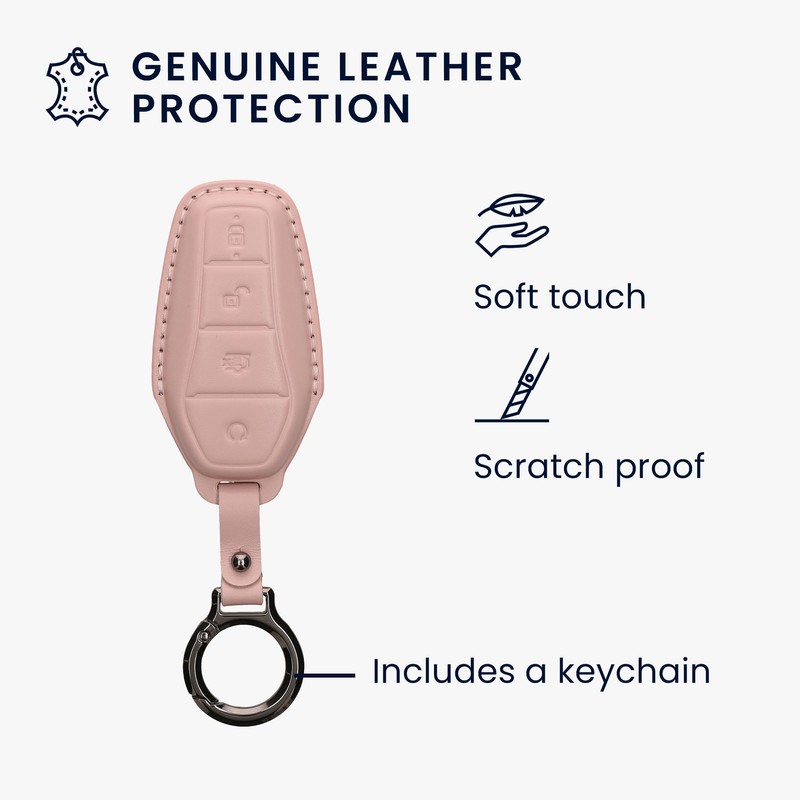 kwmobile Premium Leather Car Key Protective Case Compatible with BYD Atto 3 / Sealion/Han/Tang/Dolphin/Seal Case - Key Bag - Dusky Pink