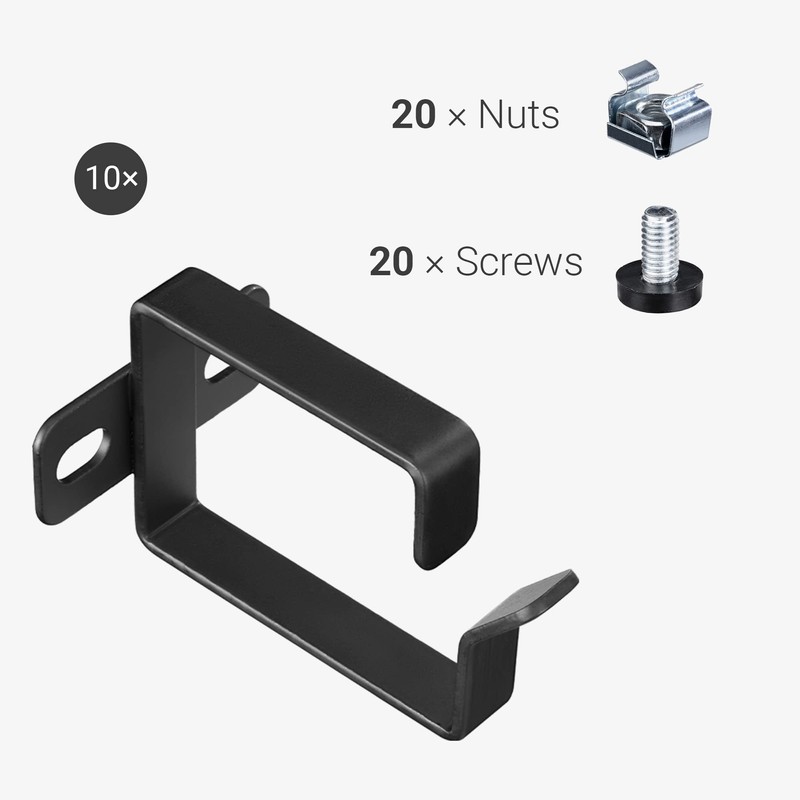 - These cable management brackets are suitable for profile rails. Screw in place using the provided screws.
