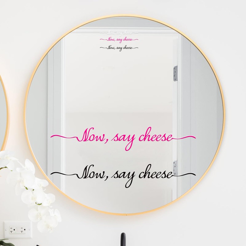 - Positive Affirmation Mirror Decals - Elevate your bathroom or car mirror with our “Now, say cheese” Mirror Decals. Give a smile to yourself every day and cheer yourself on of our “Now, say cheese” Mirror Decal. Elevate your bathroom decor and make every day a little brighter.