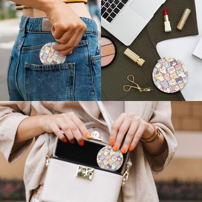 KWSAAHU Double-Sided Pocket Compact Mini Makeup Mirrors 1x, 2X Magnifying Mirror Portable Foldable Round Small Purse Mirror Suitable Daily Travel Party for Woman Man - Kawaii Small Cats