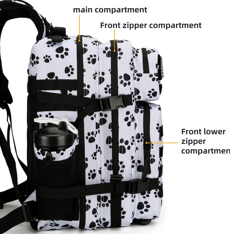 5. The tactical backpack has Cup Holders on both sides of the backpack and can fit 750ml water bottles, umbrellas, or tools.