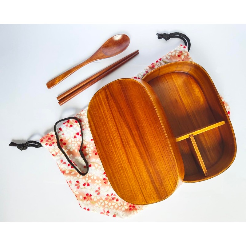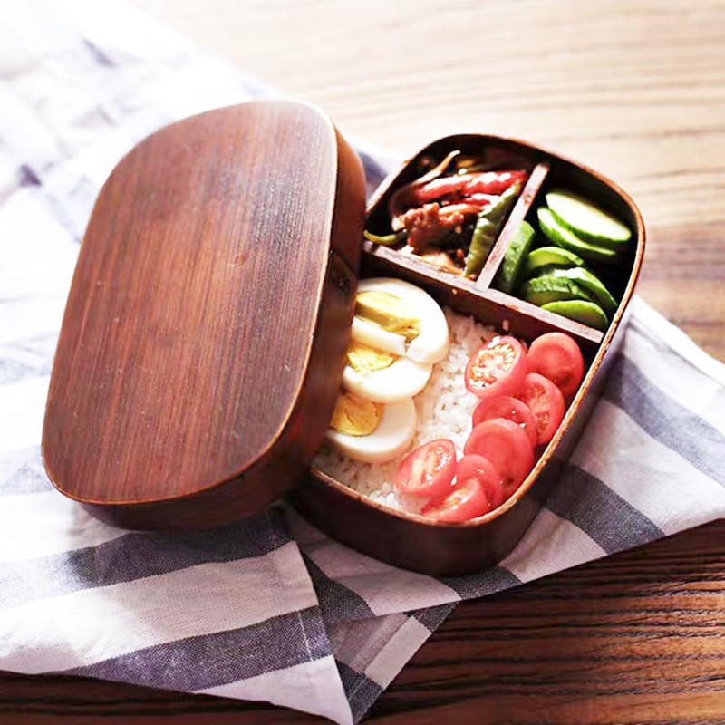 - Material: Natural wood (Cedar) natural lacquer coating; The wooden lunch box absorbs the excess moisture of the rice and the moisture of the lunch box will return to the rice as the water evaporates over time, so the rice will not harden and stay fluffy. The more you use it, the more it will become a masterpiece