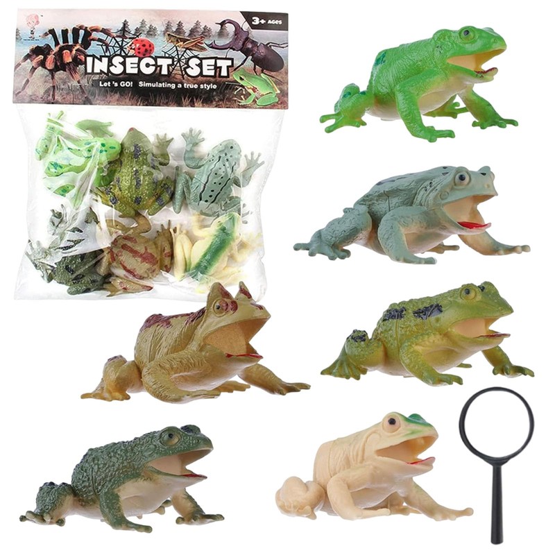 - Quantity and Material: This set includes 6 detailed resin frog toys and 1 magnifier, crafted from high-quality, durable resin. The material is sturdy, ensuring the toys can withstand active play, and is non-toxic, making it safe for children to enjoy.