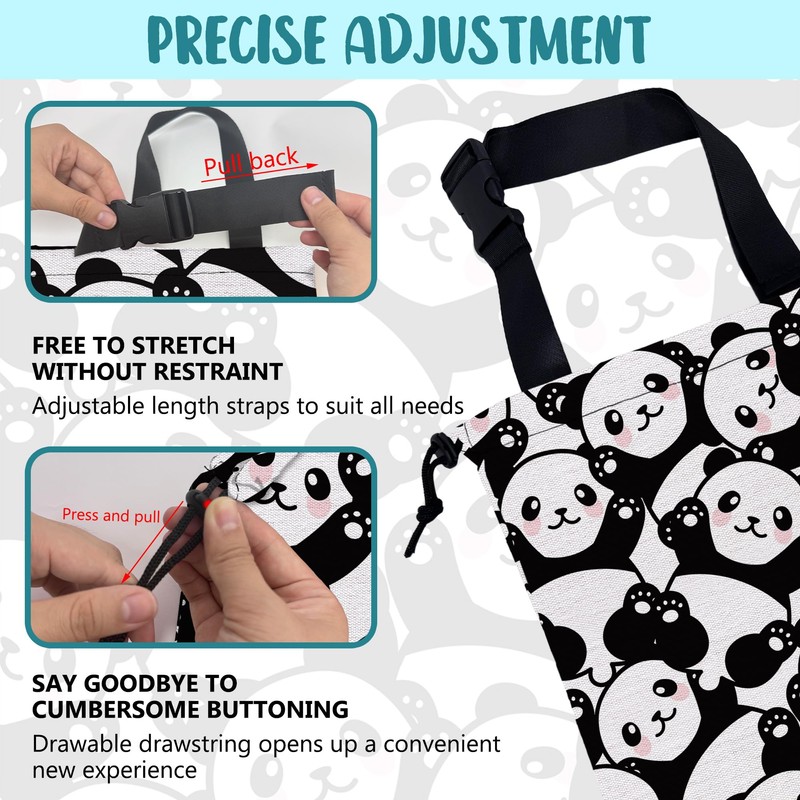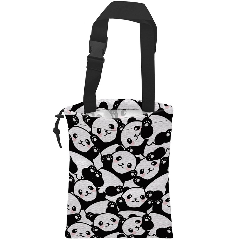 KXWQTRDD Car Garbage Bag Cute Black Panda Drawstring Car Trash Bag Hanging for Back Seat with Adjustable Buckle Canvas Vehicle Trash Can Easy-to-Install