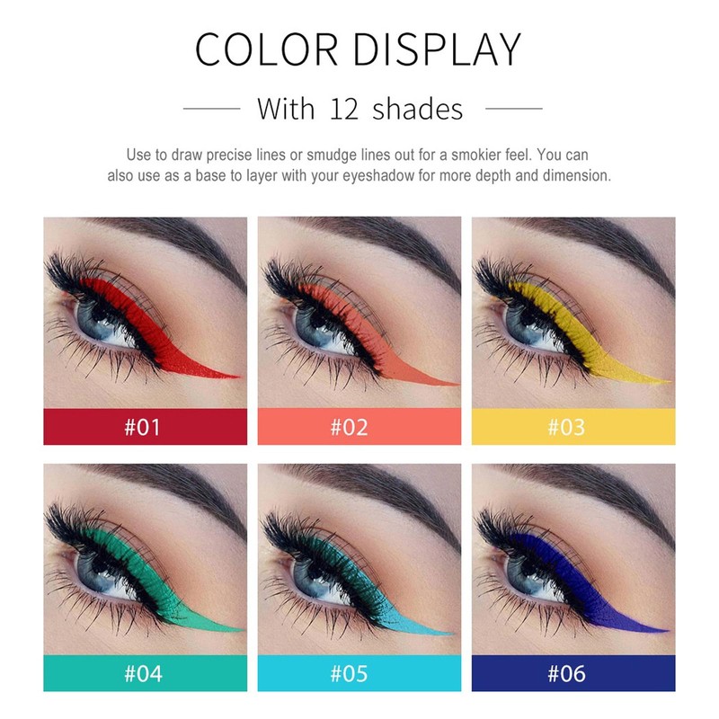 - 【Kyannkar Matte/Shine Eyeliner】12 colors rainbow colorful liquid eyeliners are ideal for party, cosmetic show, daily makeup, Including popular colors such as white, black, red, brown, blue, etc. making you be the eye-catcher on every occasion.