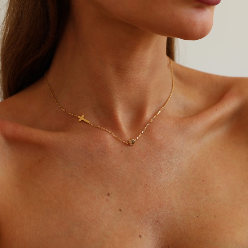 • Simple Design: This gold sideways cross neckalce features dainty cable chain with birthstone, the ideal piece of date night jewelry, this dainty gold necklace is ideal for women's neck