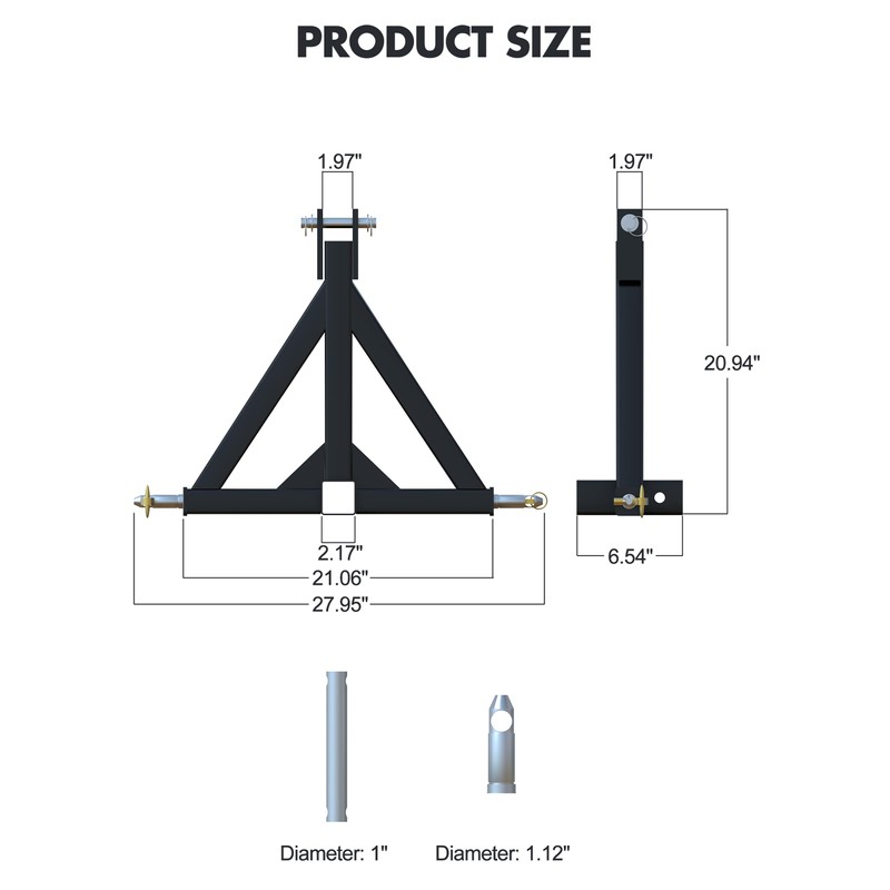 - [Bottom Special Design]: This 3 point quick hitch is equipped with a 7/8-inch diameter CAT 1 lifting pin for Category 1 tractors and can be used on both small and large tractors