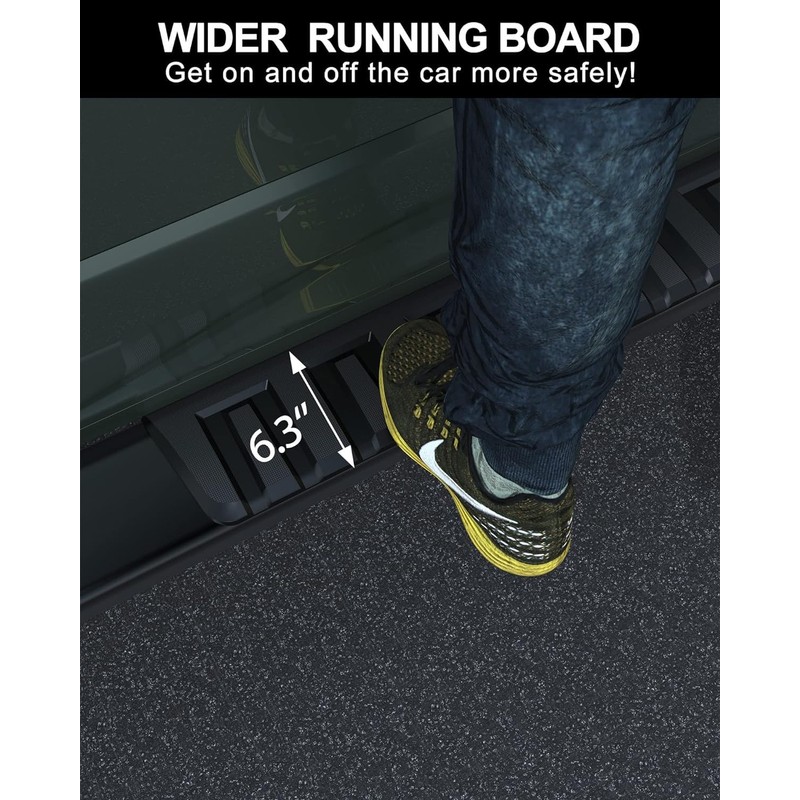 - Enhanced Accessibility: Engineered with a wider stepping surface, Kybolt aluminum running boards provide improved accessibility for entering and exiting your Ram 1500. The non-slip stepping pads offer additional safety, providing stable footing for passengers in various weather conditions.
