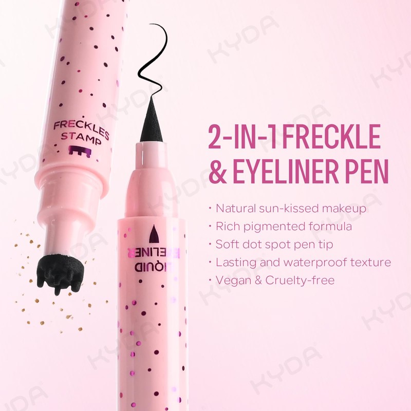 KYDA Freckle Liquid Eyeliner Pen, 2 in 1 Freckles Stamp and Black Liquid Eyeliner, Waterproof and Long lasting Soft Dot Spot Pen Realistic Fake Freckles for Natural Lifelike Sun-kissed Makeup-ESPRESSO