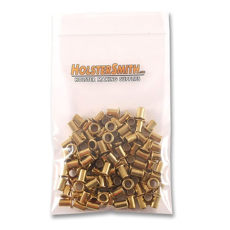 Kydex Holster Eyelets - (#8-12 Length) - (1/4 in. Diameter) - (Polished Brass) - (100 Pack) - (USA Made) - Kydex Rivets for DIY Holster and Sheath Making