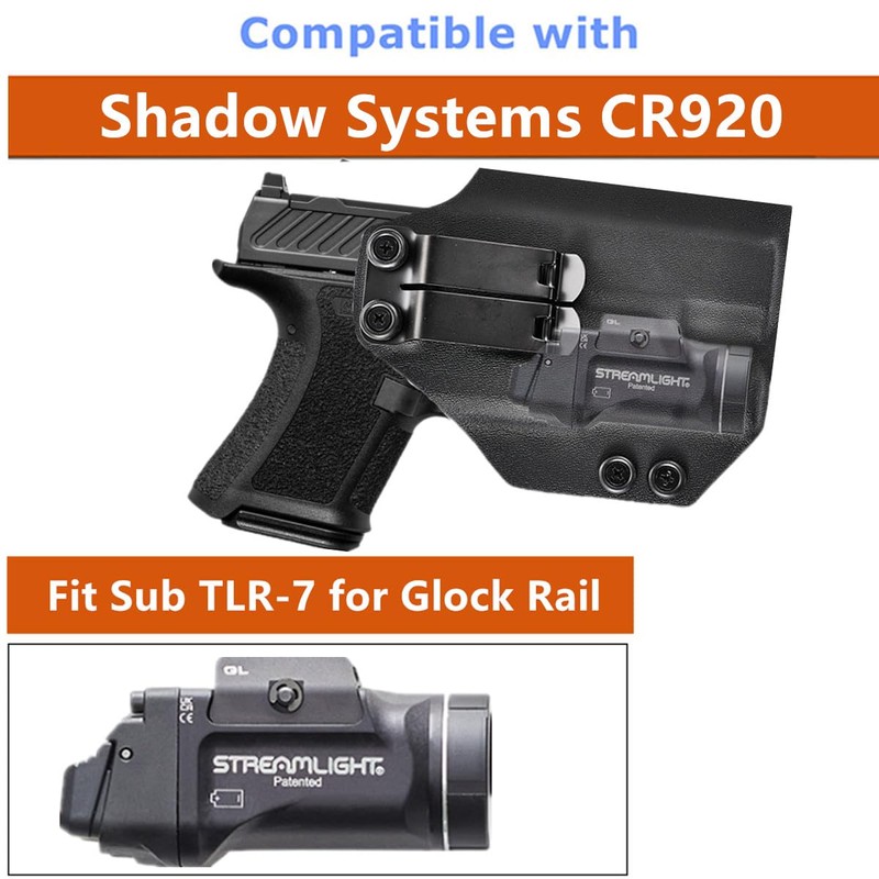 - Inside The Waistband Kydex Holster Fits : Shadow Systems CR920 Compatible with Streamlight TLR-7 X Sub for Railed Glock Light ( Exclusively Railed Glock Weapon Light Model ) ,TLR-7 Sub must be attached to your Shadow Systems CR920 to fit properly