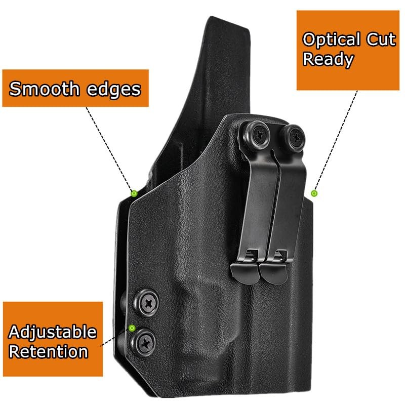 - ADJUSTABLE Posi-Click Audible Retention Lock System, Fits Like Glove:Holsters possess Posi-Click Audible Retention Lock system, you would hear a "click" sound when your pistol is firmly seated.