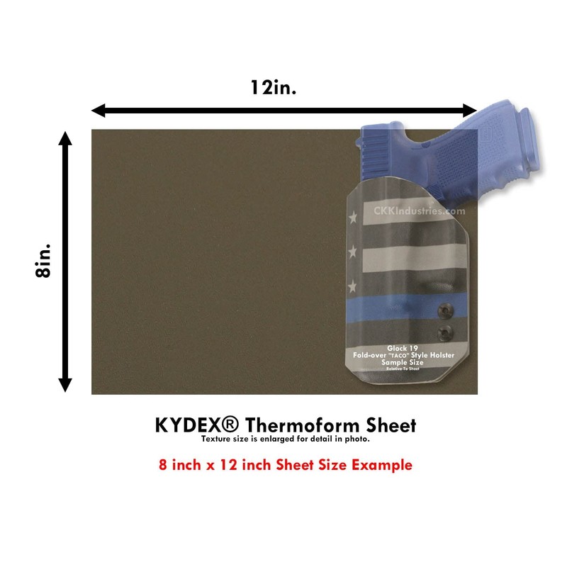 • 100% Satisfaction Guaranteed: With over 20 years of experience in developing holster making accessories, the thermoform sheet material line offered by HolsterSmith is unsurpassed in the holster making and accessory industry. Our thermoform sheet materials are used by professional soldiers, police officers, public safety individuals, and holster makers worldwide. Each Kydex sheet is individually inspected and guaranteed for quality.