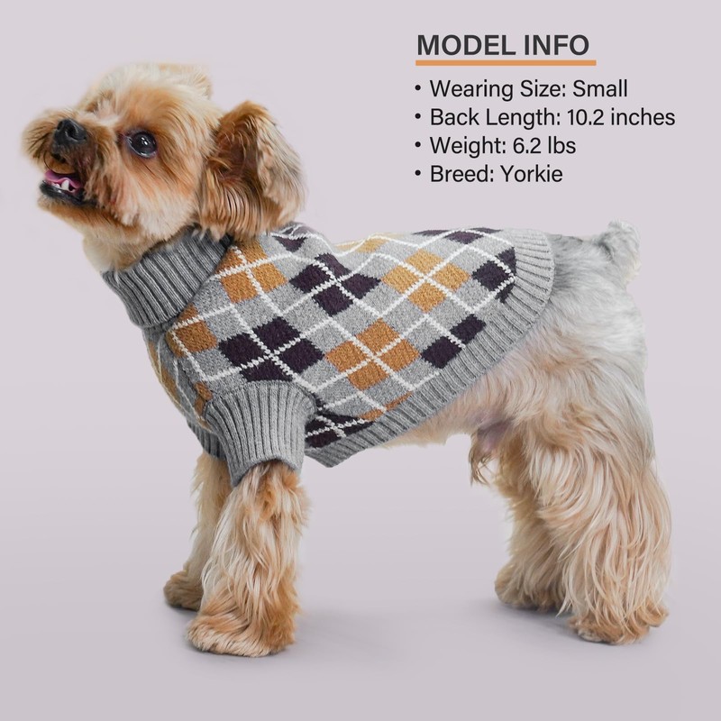 - Fashion: The stylish diamond plaid and unique color scheme make your dog eye-catching enough, exquisite, suitable for various occasions and holidays to wear, unique style sweater will bring surprises and different experiences for you and your dog.