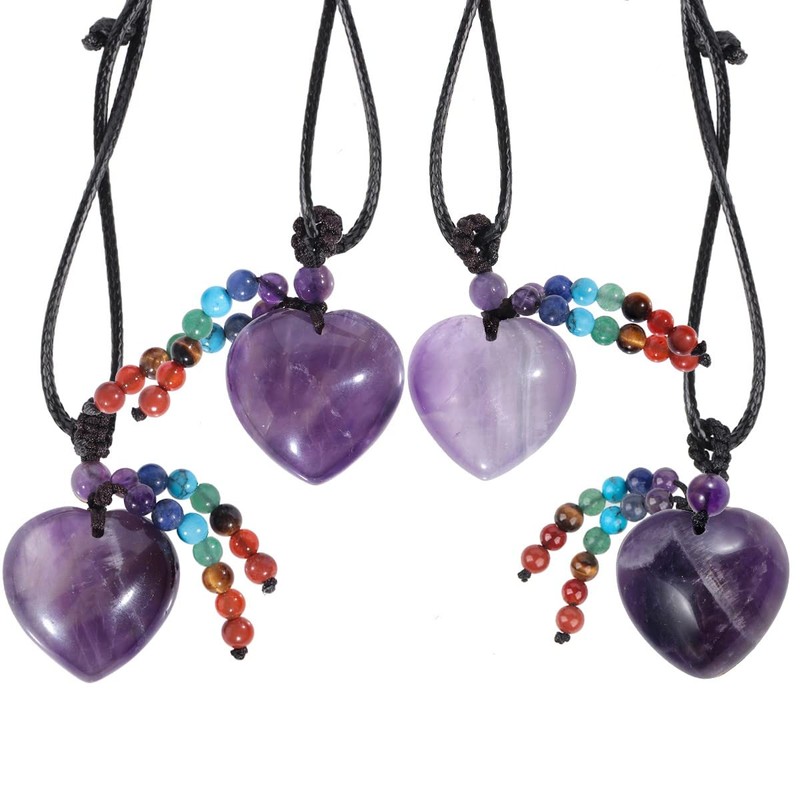 KYEYGWO 7 Chakra Crystal Heart Pendant for Men and Women, Heart Shape Gemstone Necklace, Healing Stone Necklaces, Love Amulet Blessing Jewellery, Lucky Charm, amethyst 7 chakras stone Wax rope,