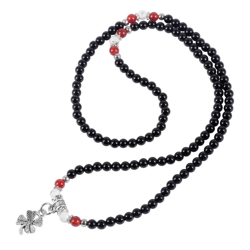 KYEYGWO Clover Leaf Crystal Beads Bracelet for Unisex, Buddhist Necklaces Chakra Bracelets Healing Stone Wrap Wrist Bracelet Lucky Charm Blessing Jewelry, Black Agate