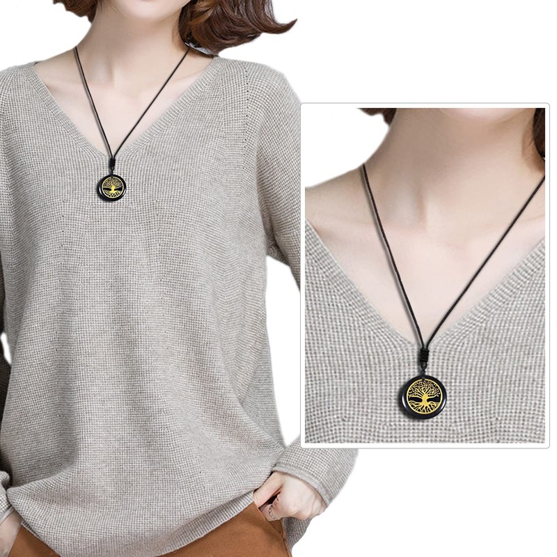 - Simple design: the round talisman pendant necklace is made of obsidian and nylon rope. On it are the golden tree of life symbols. The stone has been cut, sanded and polished to give a very smooth finish. You can adjust the length of the nylon cord within a certain range, suitable for most people to wear.
