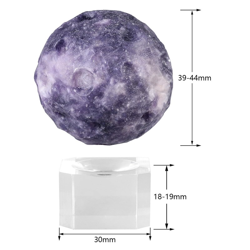 - Healing Planetary Statue Size: Stone ball diameter: 39-44mm. Length of the stand: 30 mm, width 30 mm, thickness 18-19 mm. The total weight is approx. 90-140g As each stone is natural and unique, the size, colour and texture of the product you receive are slightly different from the photos. Package includes: 1 x gemstone ball with acrylic stand, 1 x KYEYGWO gift bag.