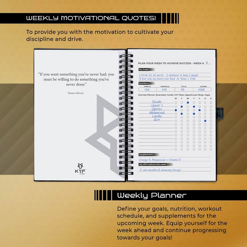 KYF Fitness Journal – Premium Log Book & Workout Planner Designed by Gym Experts, 12 Weeks Workout & Macro Tracker, Gym Hardcover Notebook, Exercise Journal for Men & Women, Undated A5 Size