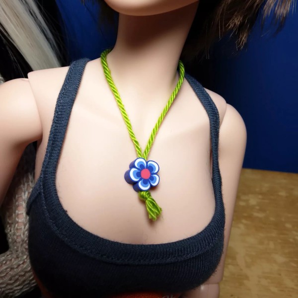 Kyle Lefort 1/3 Scale Smart Doll Sized Dark Blue White & Red Clay Flower Pendant Necklace