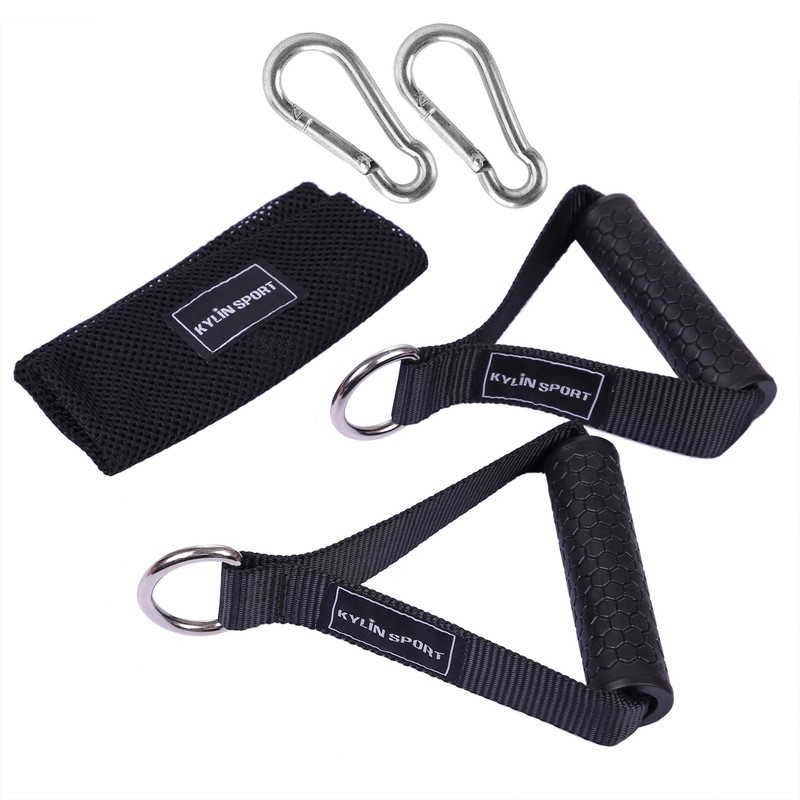 - This cable handle attachment has a Silicone-covered ABS tube grip, nylon strap and steel D-ring. Soft Silicone handles make it more comfortable to use, comfortable to hold. Leave away from the friction, you can focus on the workout. With 2 spring snap hooks, you can quick conneck/disconnect the handle to the resistance bands, chains or straps.