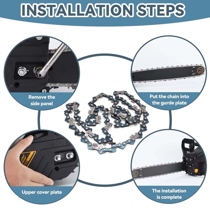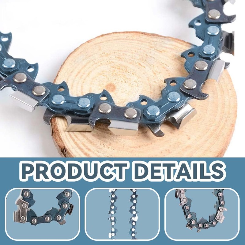 Precise dimensions: the chain (3/8-12 inches with 44 links) is tool-free adjustable and automatically adapts to the guide sword. The black oxidation protects against corrosion - even in moisture and extreme temperatures.