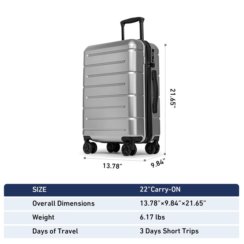 - 【Lightweight and Durable Material】:22 inch carry on luggage made of brand new extra-thick Polycarbonate+ABS materials for hardshell,which make the luggage more durable,lighter and impact-resistant features textured finish to prevent against scratches, keeping cases beautiful after a trip