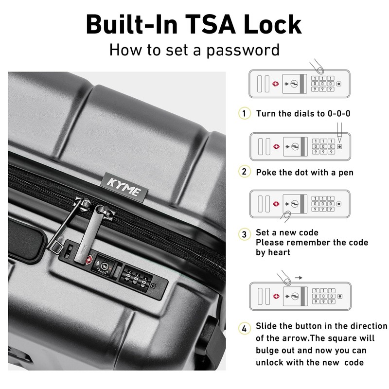 - 【Premium Service And Warranty】: KYME will back each piece of tsa approved carry on luggage with a 3-year manufacturer's warranty. Before shipment, hard side luggage with spinner wheels undergoes thousands of rigorous tests to ensure that our carry on suitcase meets strict standards and can withstand any journey. If there is any quality problem, please feel free to contact us. Professional and patient customer service will reply to your satisfaction in time